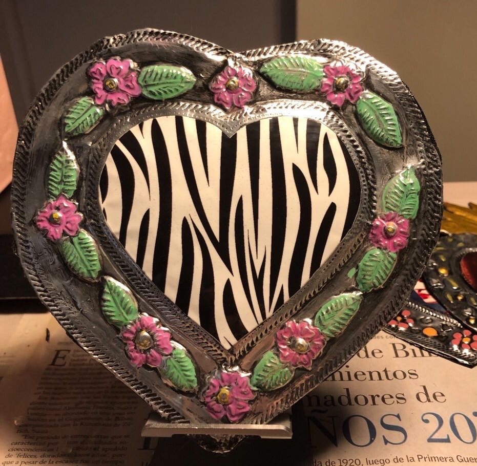 Corazón decorativo Frida Khalo tonos amarillos y rosados