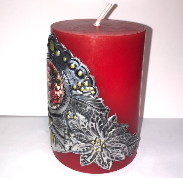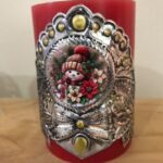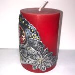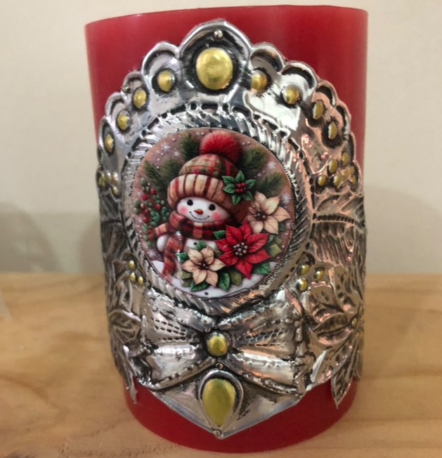 Vela Roja con diseño complejo de Mono de nieve en aluminio repujado reutilizable.